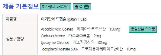 약학정보원에서 공개되어 있는 이가탄(공식명 : 이가탄에프캡슐)의 성분을 정리해봅시다.